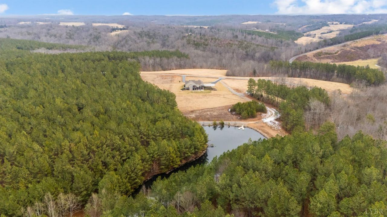 Your DREAM getaway awaits on 158 acres in BEDFORD County, JF schools. Incredible property with a fabulous home featuring over 4,500 sq. ft., plus outdoor living spaces to relax and entertain, and your private pond. Fun NEVER ends with over 2 miles of trails ideal for 4-wheelers and ATV's. You will LOVE entertaining your guests, the HOUSE to BE for fun, the big game, and so much more. Secluded retreat, perfect for unwinding, relaxing by the pond, the sounds of nature. AMAZING! Sensational sunsets, and step inside to a charming great room with stone fireplace flanked by custom built-ins. Great room is open to the kitchen with granite, custom cabinets, gas stove, stainless appliances, pantry nearby, dining area. Coffee and conversation in the sunroom, or enjoy sunrises from the multiple covered porches overlooking the pond, or patios. Primary suite with pampering bath. Two other bedrooms on main level. Terrace level features family room, wet bar, full BA, BR, office, garage, storage.