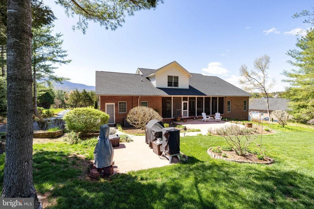 This exquisite detached all brick residence, nestled within the prestigious Cliffside community, offers an unparalleled blend of luxury and comfort. Built in 2003, this meticulously maintained property spans over 4,000 square feet and sits on a generous 2.23-acre lot, providing ample space for both relaxation and entertainment. Step inside to discover a sophisticated interior featuring a traditional floor plan adorned with hardwood and tile flooring. The gourmet kitchen is a culinary enthusiast's dream, equipped with upgraded countertops, an island, and a spacious breakfast area. The adjoining dining area (main level) and wet/dry bar (downstairs) enhance the home's entertaining potential. The primary suite boasts a lavish bathroom with a whirlpool tub and walk-in closet, providing a serene private retreat. Additional highlights include a cozy gas fireplace and an inviting screened-in porch. The mostly finished basement offers additional living space with a walkout level, perfect for hosting guests. Outside, the meticulously landscaped grounds feature exterior lighting and a patio, while private access to the Shenandoah River allows residents to indulge in fishing and swimming for an elevated lifestyle experience. The attached side-entry garage accommodates two vehicles, complemented by a private asphalt driveway. Recent improvements within the last five years further elevate the property’s value and peace of mind: a new roof, tankless hot water heater, installed whole-house generator, new bay windows, and the removal of more than 100 trees to open up stunning mountain views. This residence epitomizes high-end living, combining elegant design, thoughtful upgrades, and exceptional amenities for a truly exclusive lifestyle.