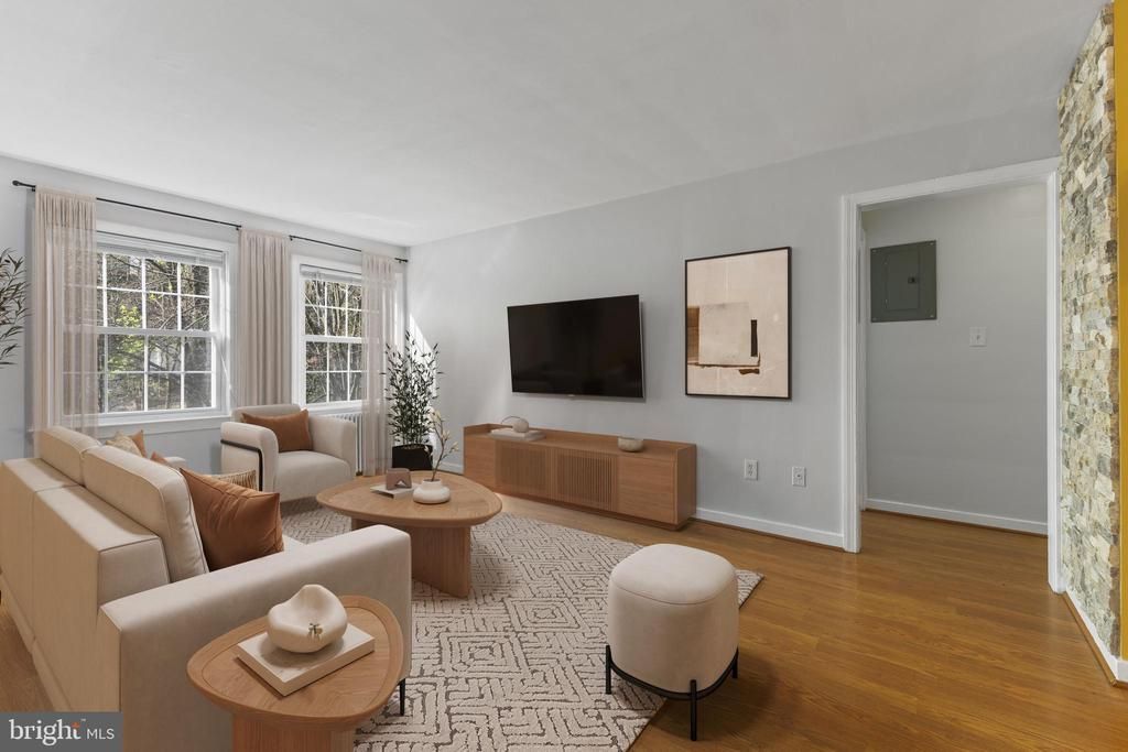Welcome to Frederick’s Court Condominium, ideally located in highly walkable South Arlington. This updated 2-bedroom, 1-bath home offers 835 square feet of comfortable, open living space. Step inside to find a spacious living room w/ distinctive stone accent walls leading into the Dining Room. The bright, updated kitchen is both stylish and functional, featuring a gas range with hood, granite countertops, custom white cabinetry, a classic subway tile backsplash, and stainless-steel appliances. The renovated bathroom includes a sleek glass sliding door for the tub and shower. Both bedrooms are generously sized and feature vinyl plank flooring, ample closets, and additional wardrobe units that convey with the home. Perfectly positioned for commuters, this condo offers easy access to I-395, Routes 50 and 66, and the Beltway. You’ll also enjoy being close to a wide range of shopping, dining, and everyday conveniences. Just steps away, the Arlington Mill Community Center offers fitness facilities, group classes, and recreational programs as part of Arlington County Parks and Recreation. And minutes to Shirlington Village and Seven Corners that offer tons of shopping, dining and entertainment options. A well-appointed home in a location that truly connects you to everything South Arlington has to offer