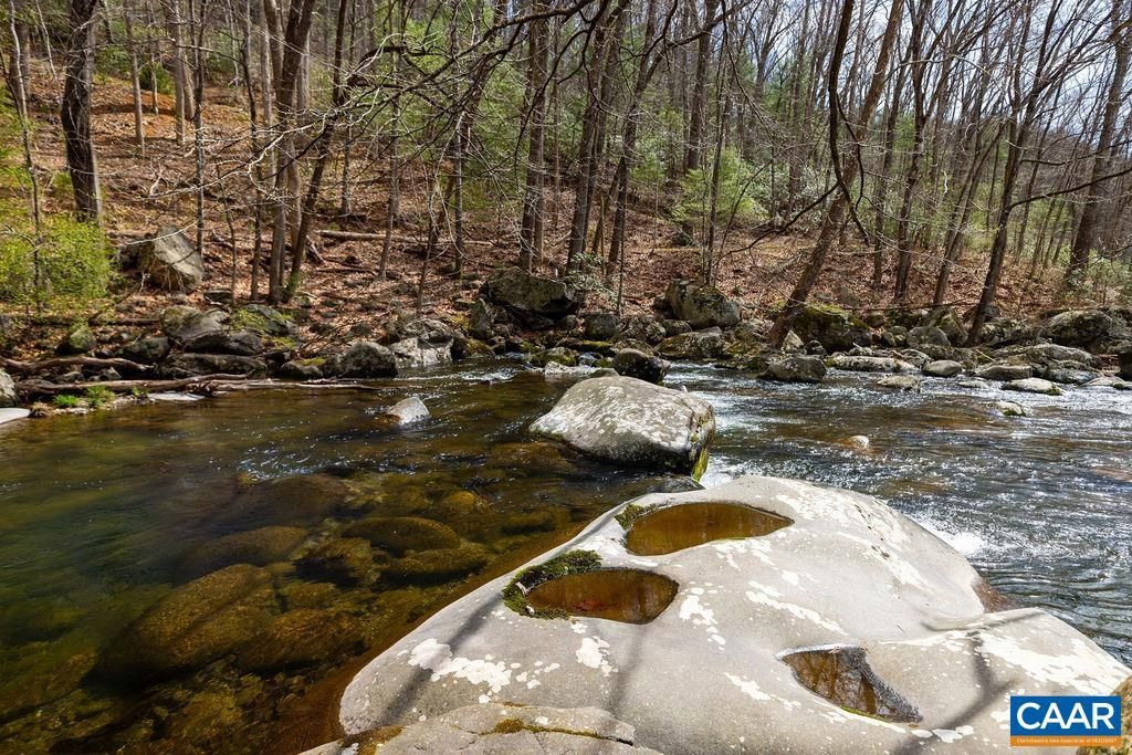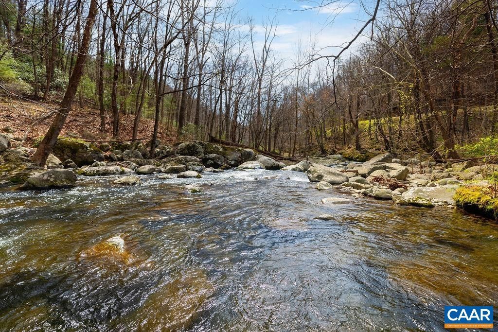 Nearly eight acres of wooded mountain terrain in the upper reaches of Nelson County, with frontage on the Piney River. The lot drops down the ridge through mature hardwoods - no structures, no clearing, no distractions. What it offers is simpler: a place to fish, hunt, camp, and disconnect entirely. Spring is the right time to see it.